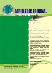 The Afrimedic Journal (AJ) is a semi-annual, multidisciplinary medical journal published by the Association of Resident Doctors, Nnamdi Azikiwe University Teaching Hospital, Nnewi, Anambra State, Nigeria. The purpose of this journal is to promote clinical and academic excellence in basic and clinical medical sciences as well as dentistry.
